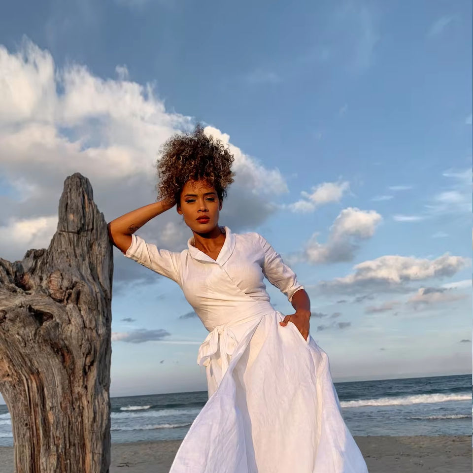 Product Name:White Wrap Linen Maxi Kaftan Dress