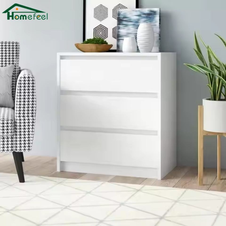 Blanc Salon Multi-tiroir Rangement Commode Armoire Mini Bois Minimaliste Chambre Commode 3 Tiroirs