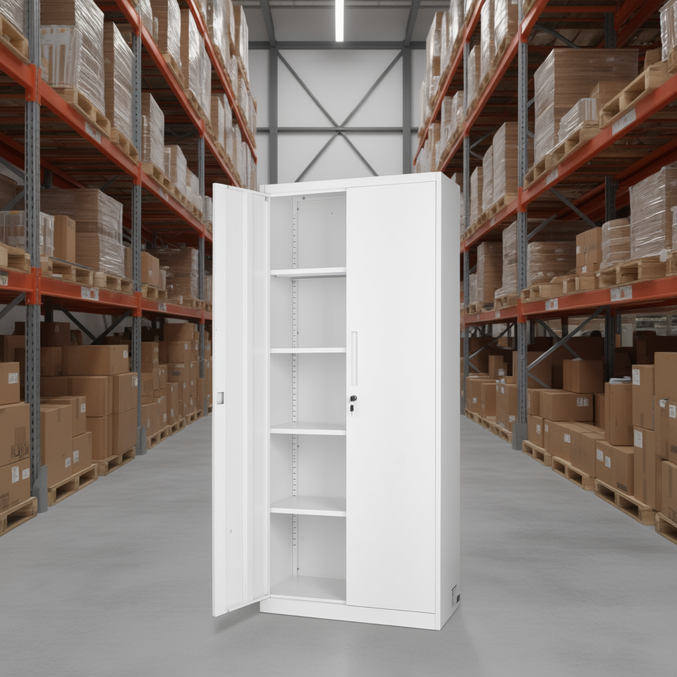 Armoire de rangement en acier blanc verrouillable, 5 niveaux, 4 étagères réglables pour entrepôt, bureau, garde-manger, buanderie