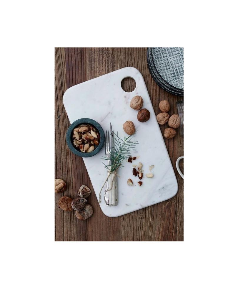 Planche à découper en marbre blanc pour une esthétique de cuisine épurée, offrant une surface lisse et une plateforme élégante pour la préparation des aliments