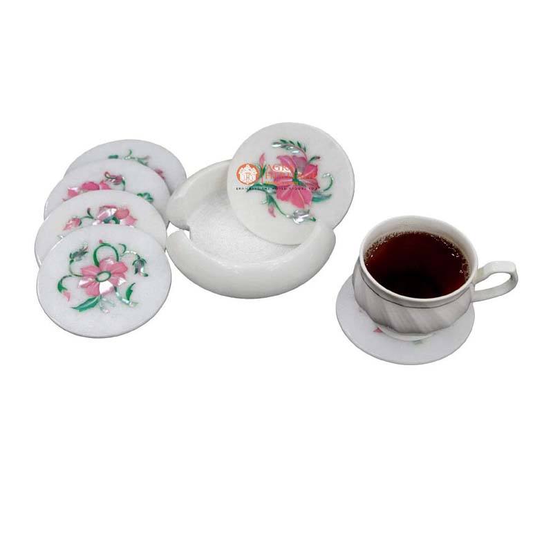 Sous-verres en marbre blanc incrustés de nacre, sous-verres en nacre, sous-verres en pierre dure, ensemble de sous-verres en perles, sous-verres à thé, articles de bar