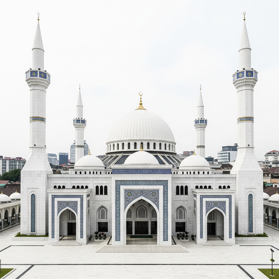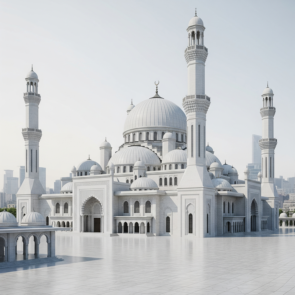 Extérieur de mosquée en marbre blanc, art islamique sculpté à la main, design moderne, entièrement personnalisable, durable, HAYAT INDUSTRIES