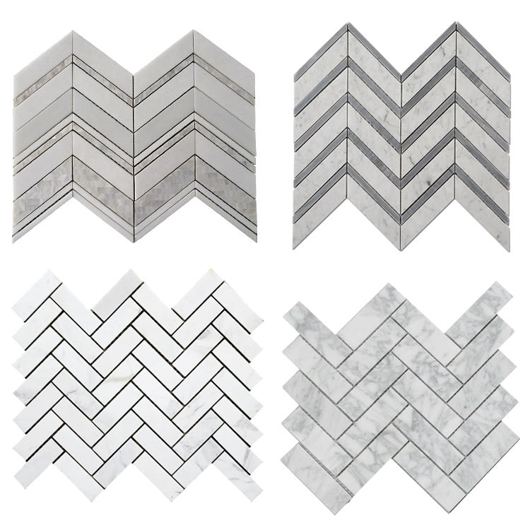 Mosaïque en marbre blanc, mosaïque en coquillages avec forme en chevron pour les mosaïques de hall, carrelage en céramique pour salle de bain