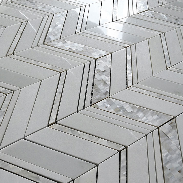 Nom:Mosaïques de marbre blanc tuile de mosaïque de coquille avec la forme de chevron pour le lobby