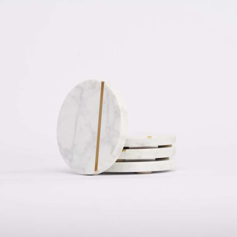 Ensemble de 6 sous-verres en marbre blanc, pierre naturelle, résistant aux taches, cadeau pour mariage et pendaison de crémaillère