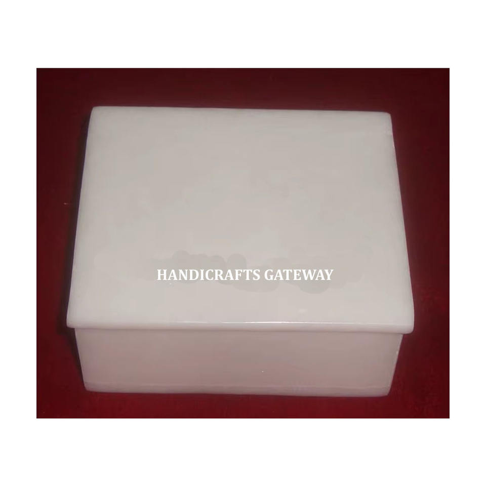 Forme carrée faite à la main de boîte de marbre simple de marbre blanc avec la surface douce et brillante utilisée pour l'emballage de collier et le but de cadeau