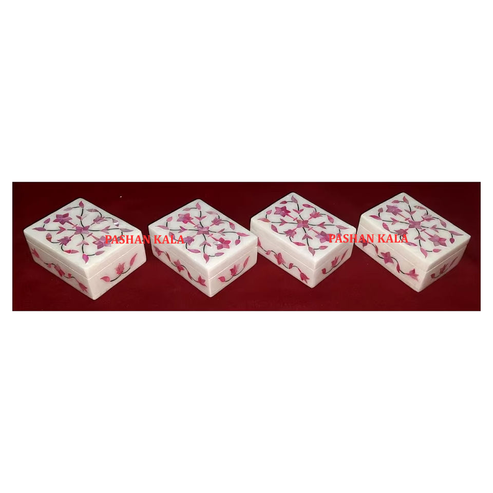 Boîtes d'emballage de bijoux de conception d'incrustation de fleur de nacre rose de forme rectangulaire de marbre blanc dans la meilleure gamme de prix la plus basse