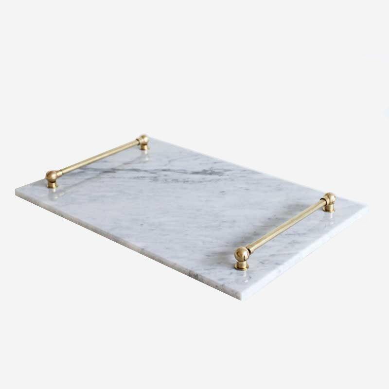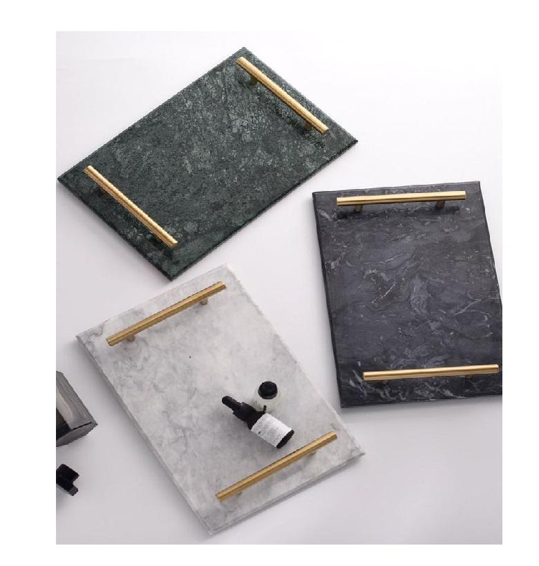 Plateau de service en marbre blanc avec poignées Plateau en marbre décoratif en forme de rectangle pour décor de restaurant de mariage à la maison