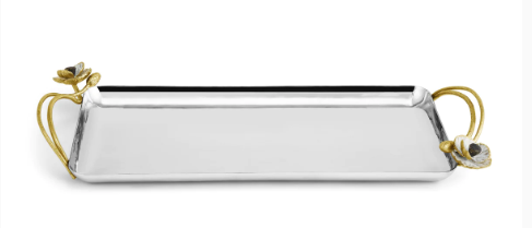 Ustensiles de table en marbre blanc décorant des plateaux de nourriture avec un côté des poignées de conception de feuille de couleur or