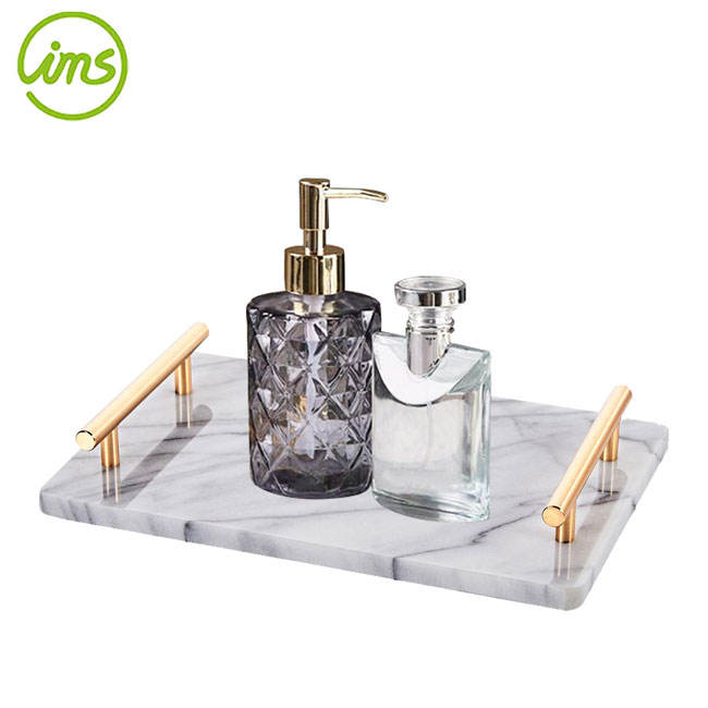 Plateau de service en marbre blanc avec poignée dorée pour les fêtes