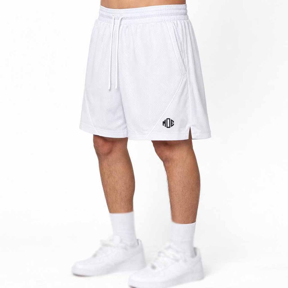 Shorts de sport blancs en maille avec cordon de serrage pour hommes, légers et respirants, bas de tenue athlétique, production OEM en usine