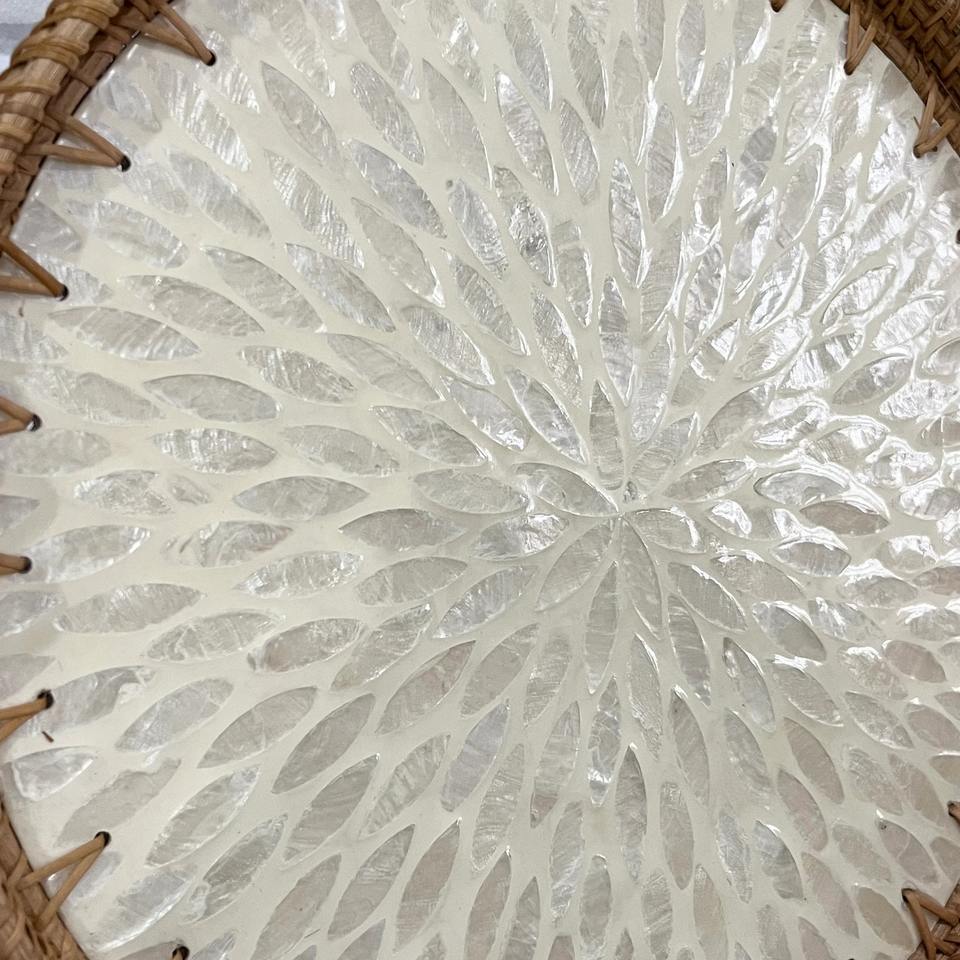 Plateau de service en rotin blanc minimaliste avec incrustations de nacre pour la maison, élégant pour la table et la coiffeuse, vente en gros depuis l'Inde