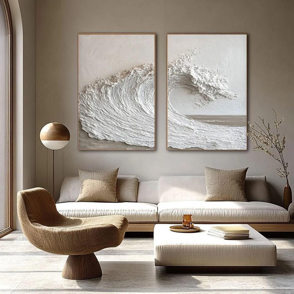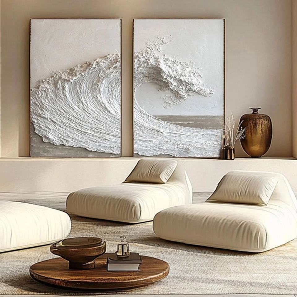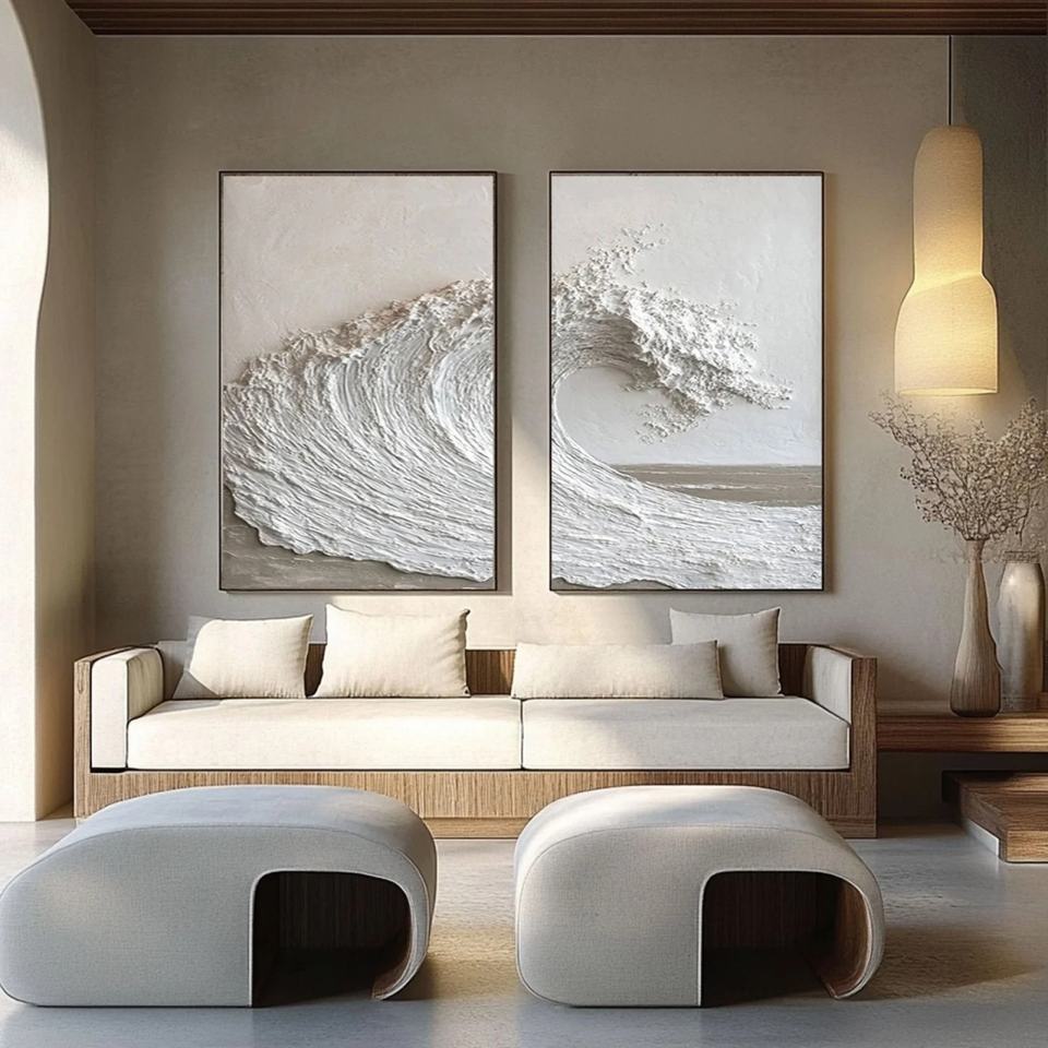 Ensemble de 2 tableaux abstraits minimalistes blancs Wabi Sabi, peinture moderne pour la décoration de la maison, peinture murale pour la maison et la galerie