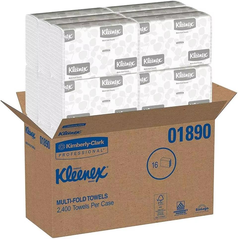 Serviettes en papier multi-pliées blanches, 150 feuilles tri-pliées, boîte de 16 paquets, serviettes à main jetables douces et absorbantes