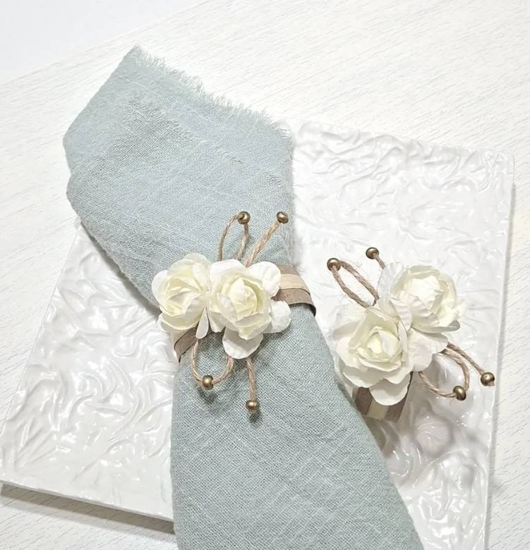 Anneaux de serviette blancs, anneau de serviette en forme de fleur en papier, porte-serviettes rustique pour mariage, décoration de table de mariage, fête