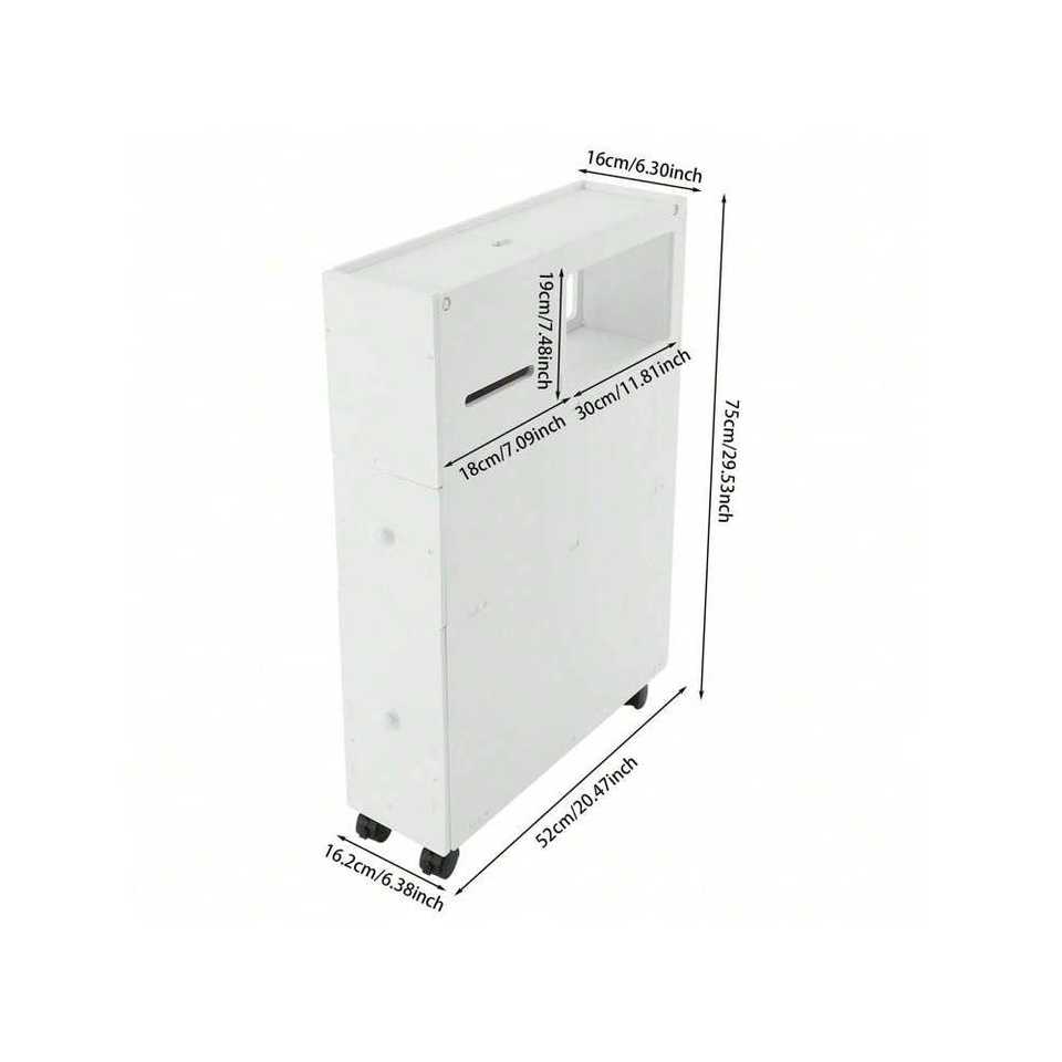 White Narrow Bathroom Toilet Sideboard Cabinet for Storing Tissues Shampoos Creams Home Storage Solution