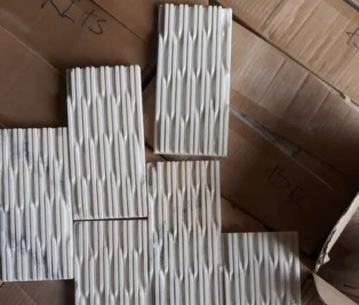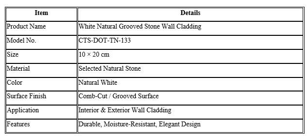 Revêtement mural en pierre naturelle blanche à coupe peignée 10×20 cm – CTS-DOT-TN-133