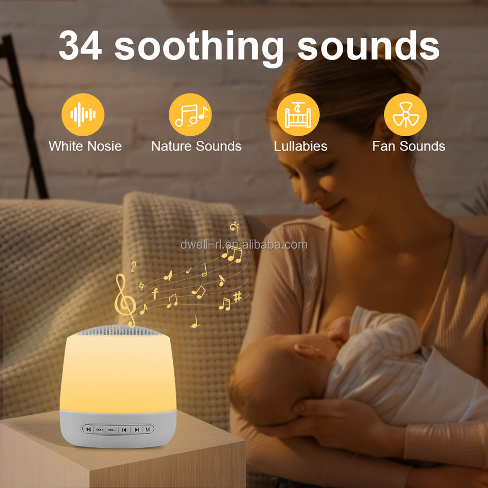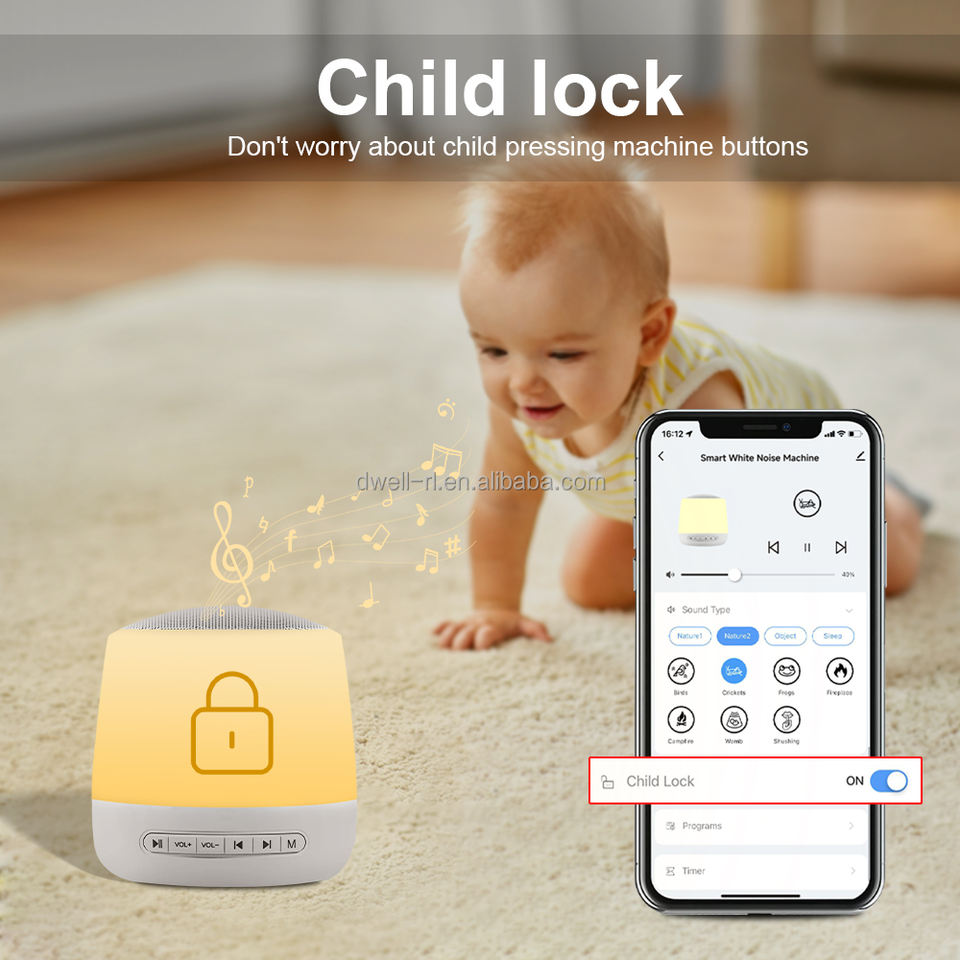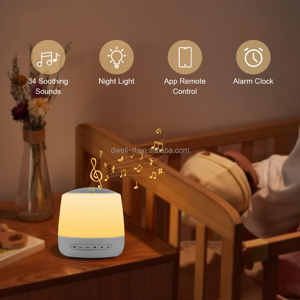 Machine à bruit blanc Réveil pour bébé 34 sons apaisants Entraîneur de sommeil Contrôle par application pour enfants Chambre d'enfant Chambre à coucher
