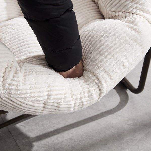 White Outdoor Rattan Rocking Chair with Padded Cushion for Porch Living Room Patio Garden
