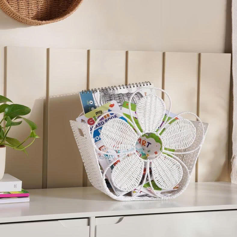 Panier de rangement en corde de papier blanc en forme de fleur, panier organisateur décoratif en osier, design élégant et mignon, écologique, OEM ODM