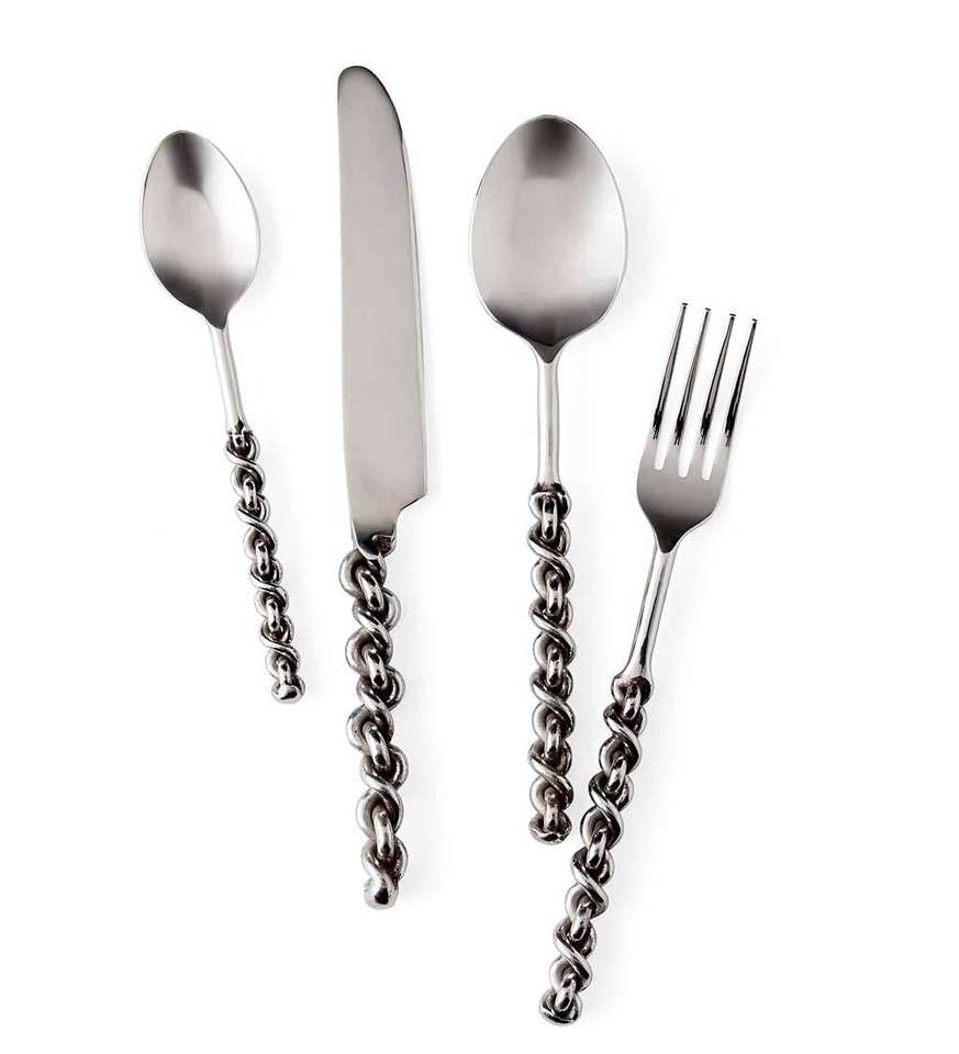 Ensemble de couverts en acier inoxydable avec manche en perle blanche 4 pièces dans un style américain de luxe argenté pour les voyages et les restaurants