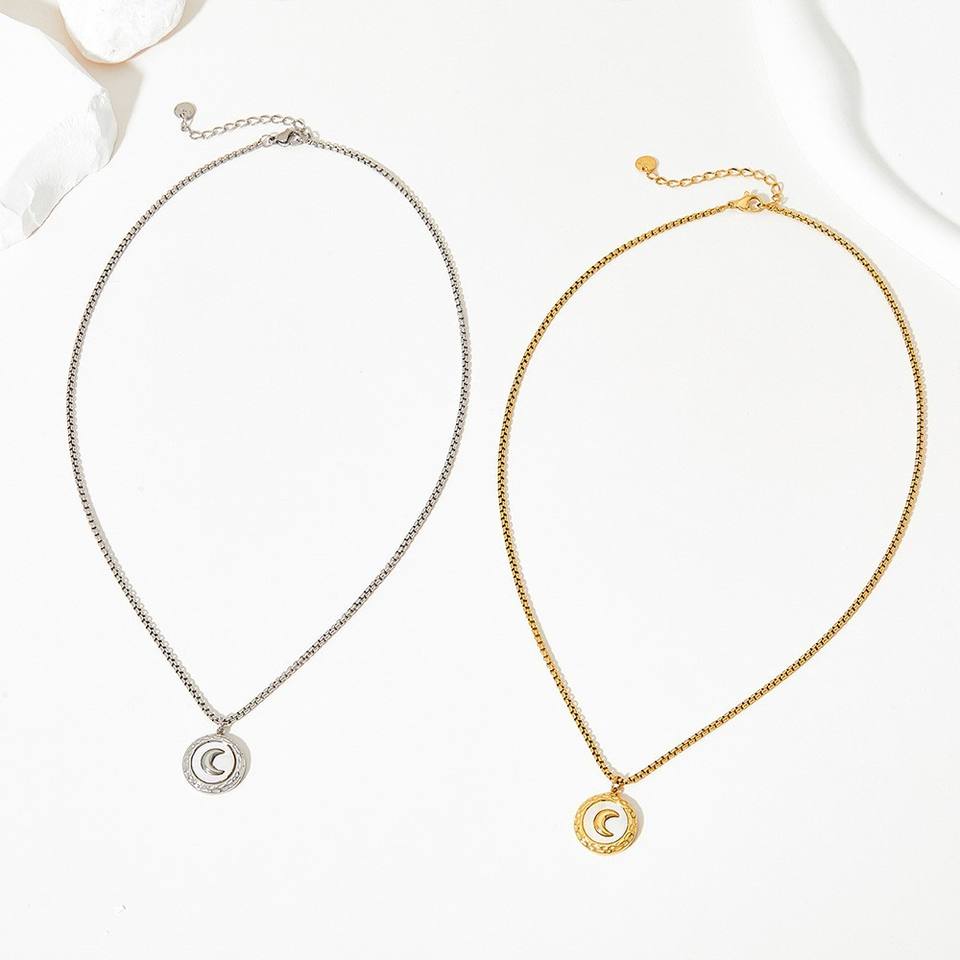 Collier chaîne avec pendentifs créatifs en forme de lune en nacre blanche, nouveau style