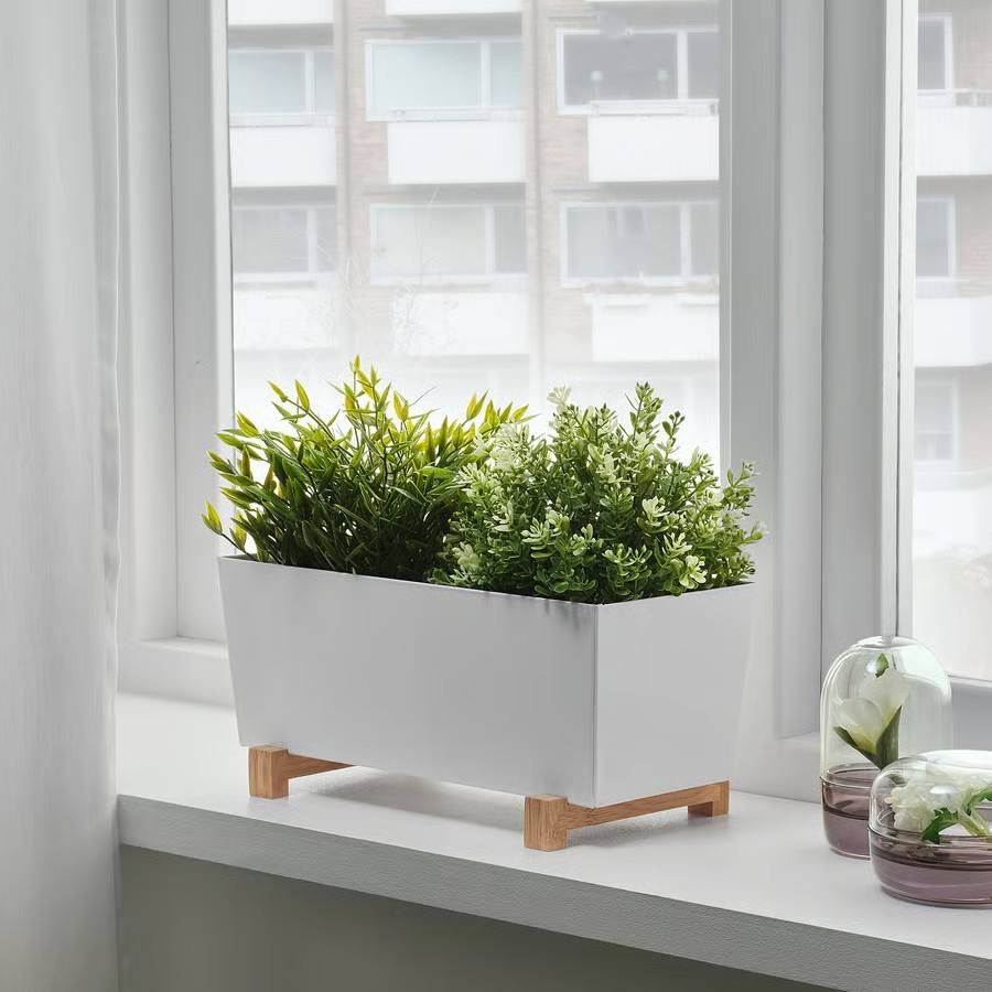 Pot de plante en plastique blanc avec trou de drainage, design rustique écologique, 32x15 cm (12x6)