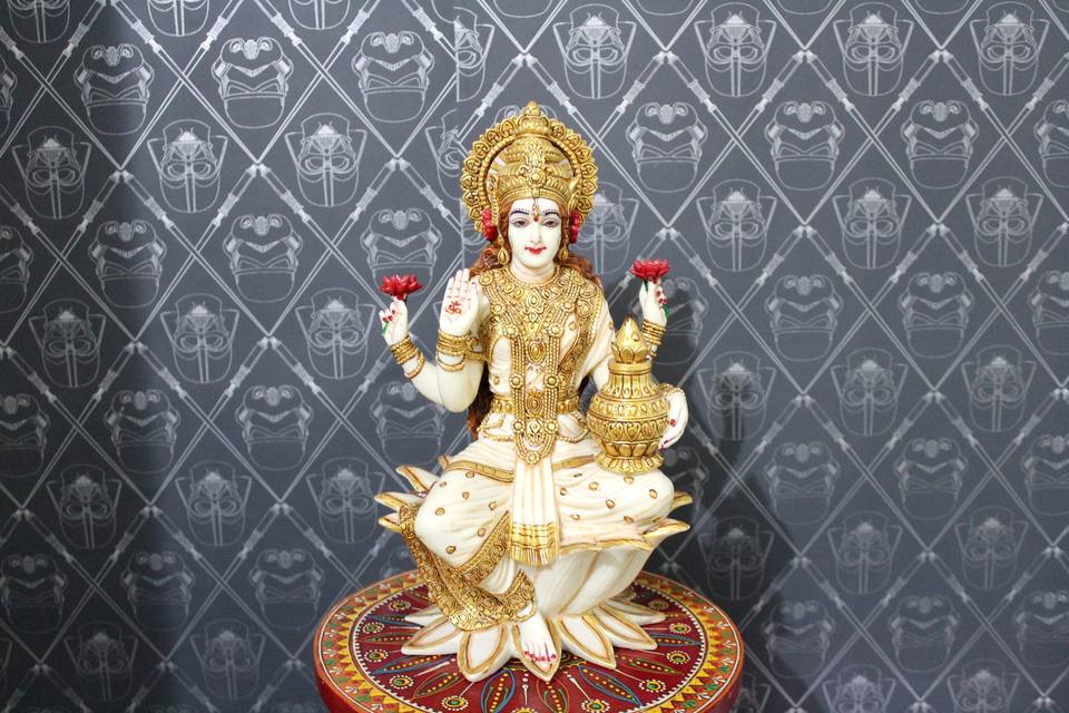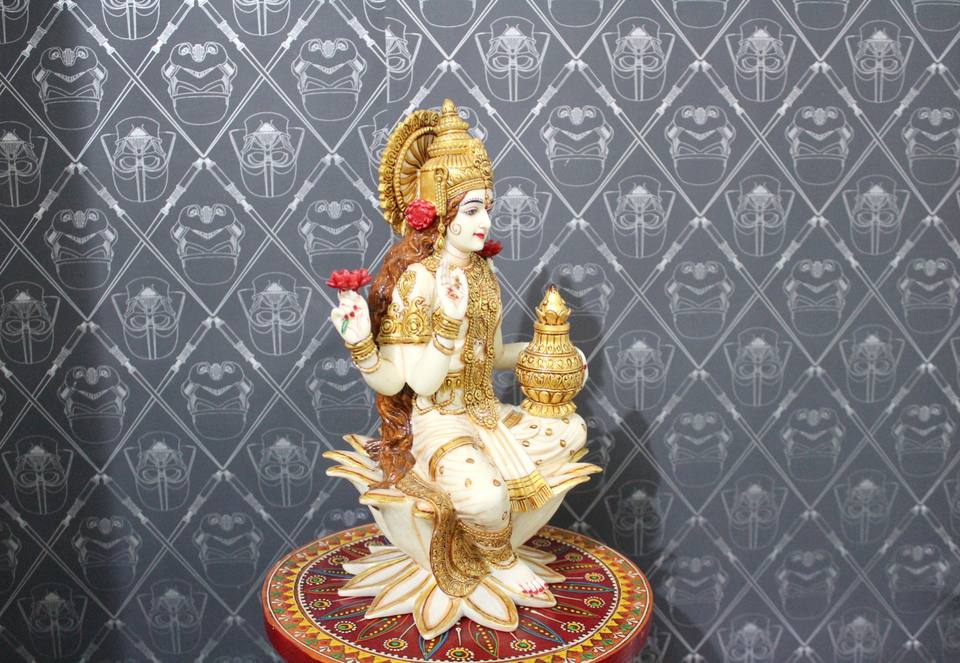 Nom du produit:Statue de Maa Laxmi assise sur un lotus