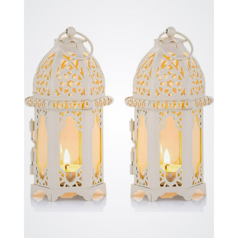 White Powder Coated Metal Candle Lantern With Clear Glass For Event Party Tabletop Decor Home Decoration Floor Lanterns