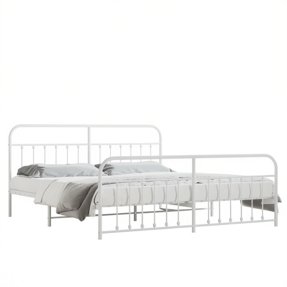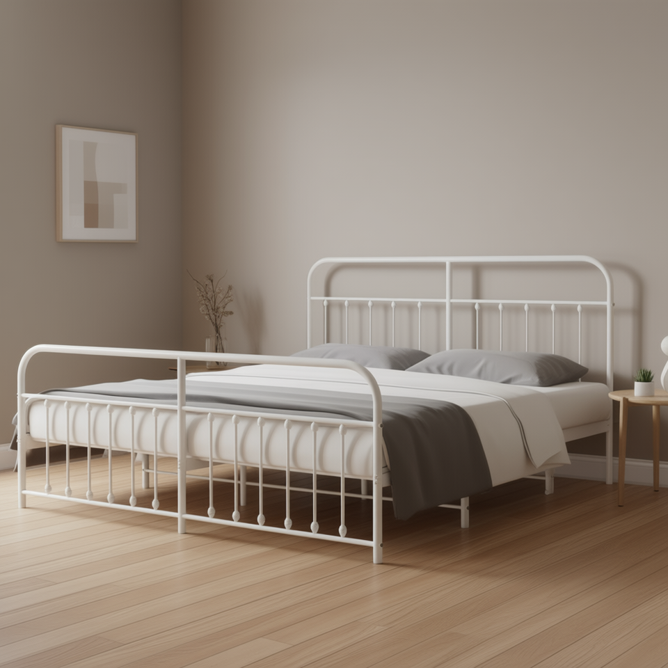 White Powder Coated Steel Full Size Industrial Bed Frame Metal Bed Series