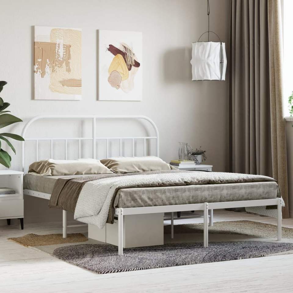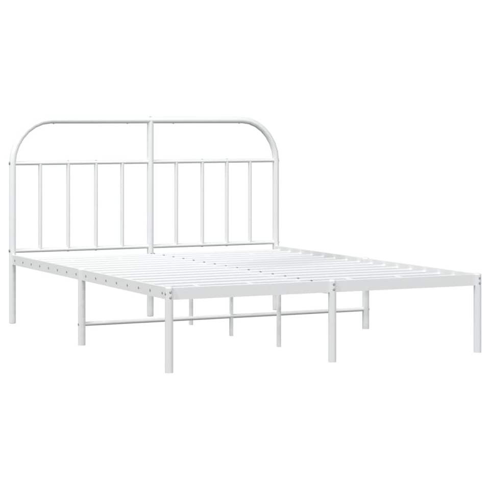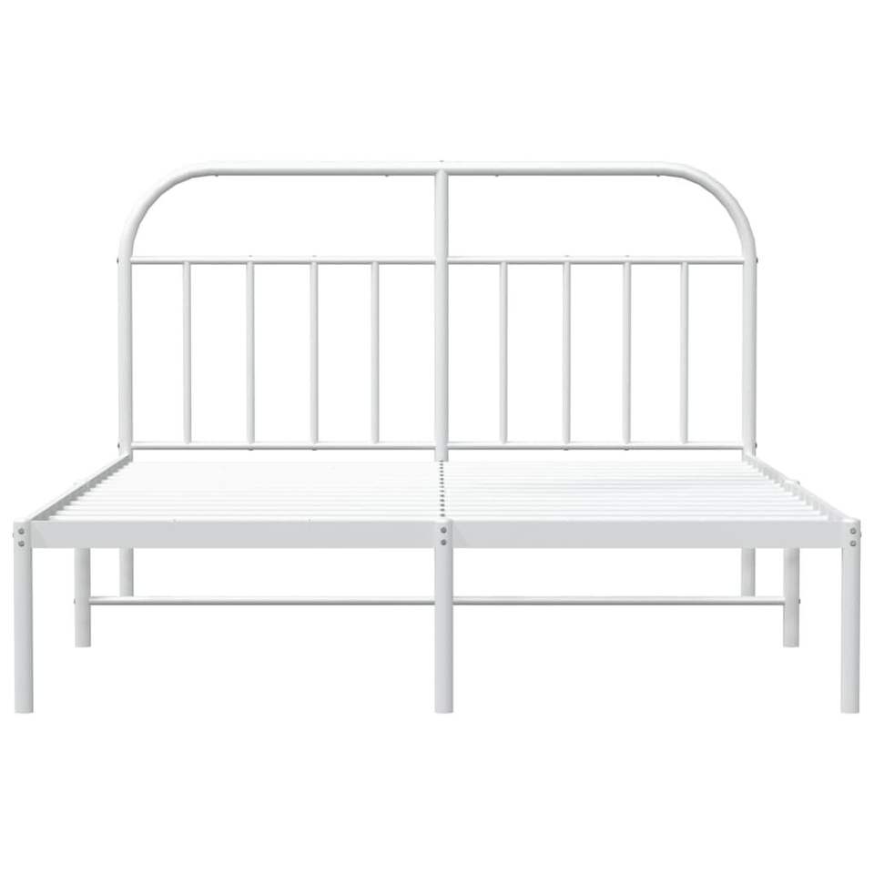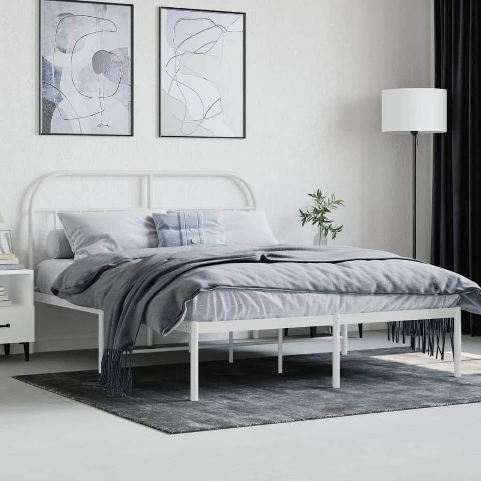 Cadre de lit rectangulaire Queen en métal, blanc, avec revêtement poudré