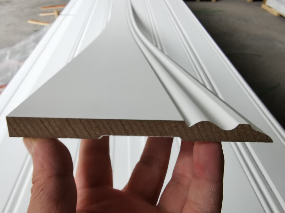 Plinthe MDF à moulure MDF amorcée blanche emballage de plinthe MDF: film PVC rétractable + palette en bois polyé