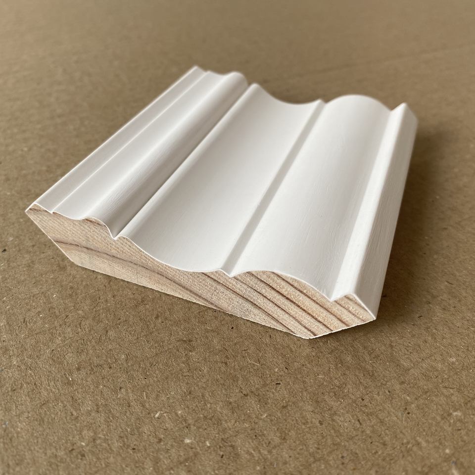 Nom:Moulure de corniche décorative en pin, jointée à doigt, apprêtée