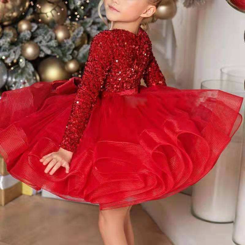 Robe de princesse blanche automne 2024 haut de gamme Sequin Bow Pompadour robe fête d'anniversaire pour enfants soirée