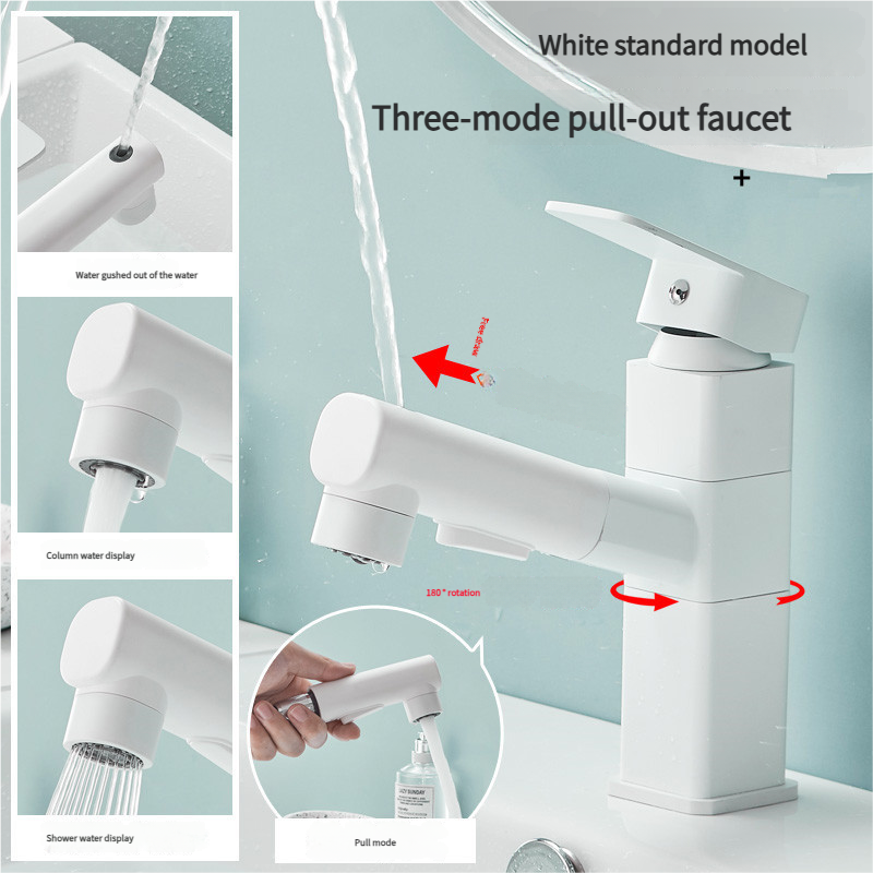 Robinet de lavabo domestique de type coulissant blanc Hôtel et maison d'hôtes Armoire de salle de bain Lavabo Robinets d'eau chaude et froide