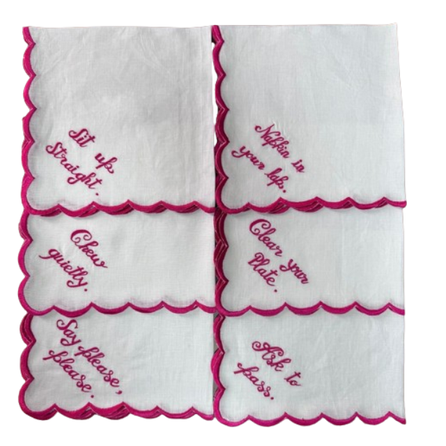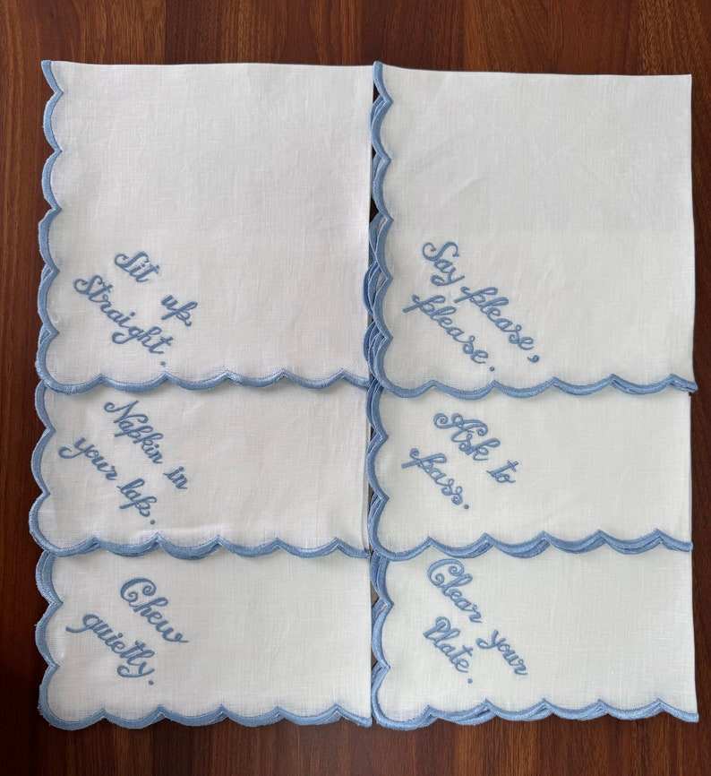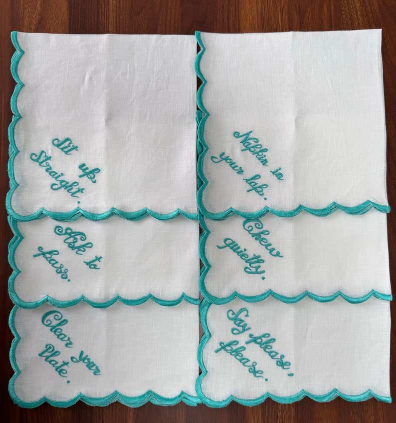 White Pure Linen Napkins With Quotes Embroidery for Wedding Events Party Home Decor Farmhouse Restaurant 18x18"- Dinner Napkins