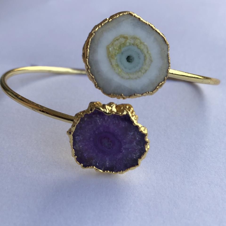 Nom du produit:Bracelets de bracelet Druzy de quartz solaire pourpre blanc-Bijoux en gros