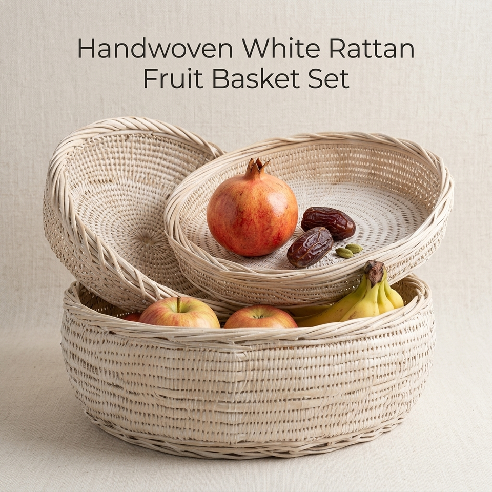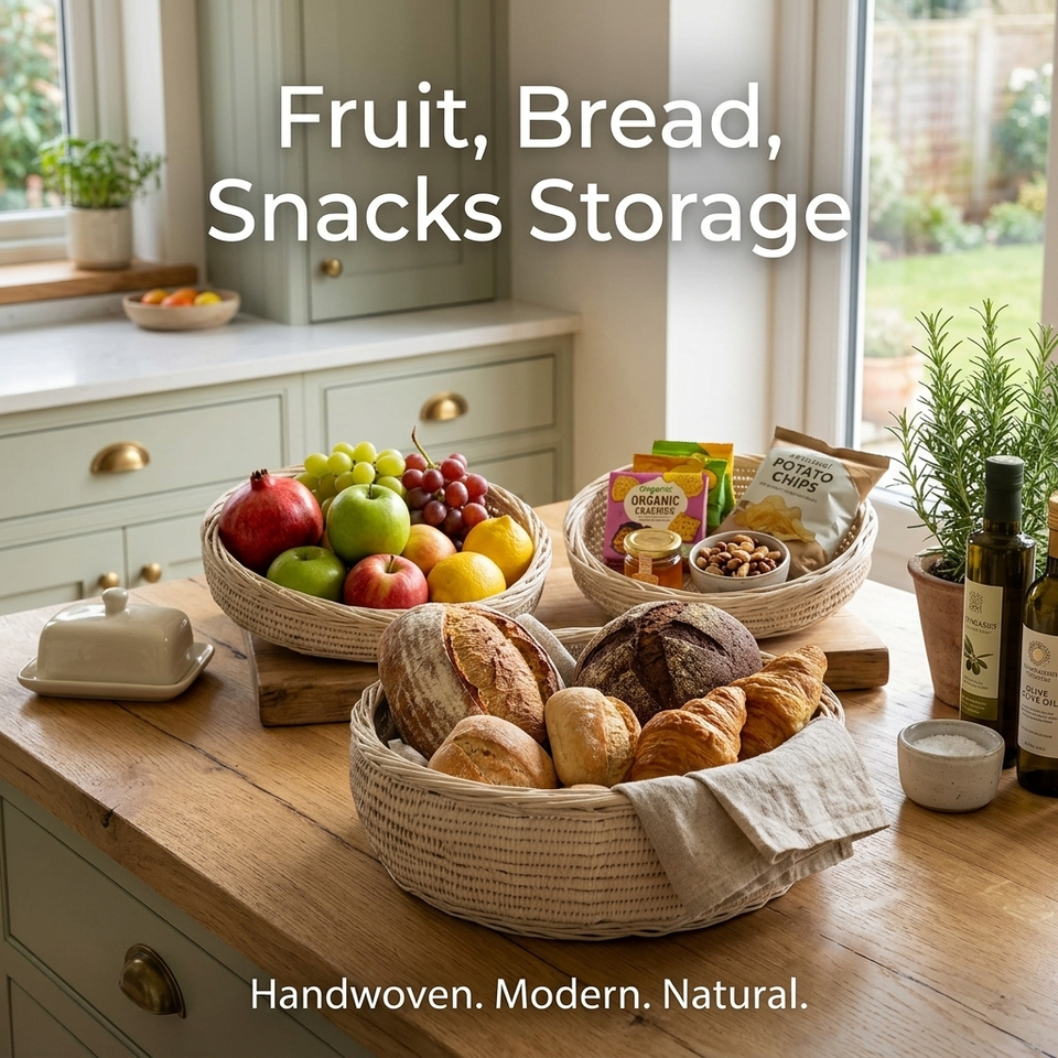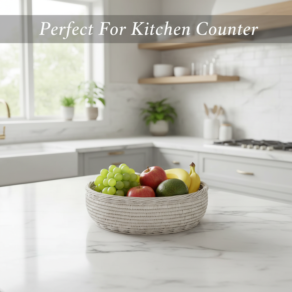 Ensemble de 3 paniers à fruits en rotin blanc, paniers de rangement en osier tressé à la main, organisateur de comptoir de cuisine naturel, panier décoratif en osier