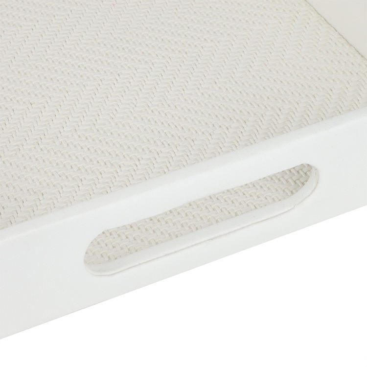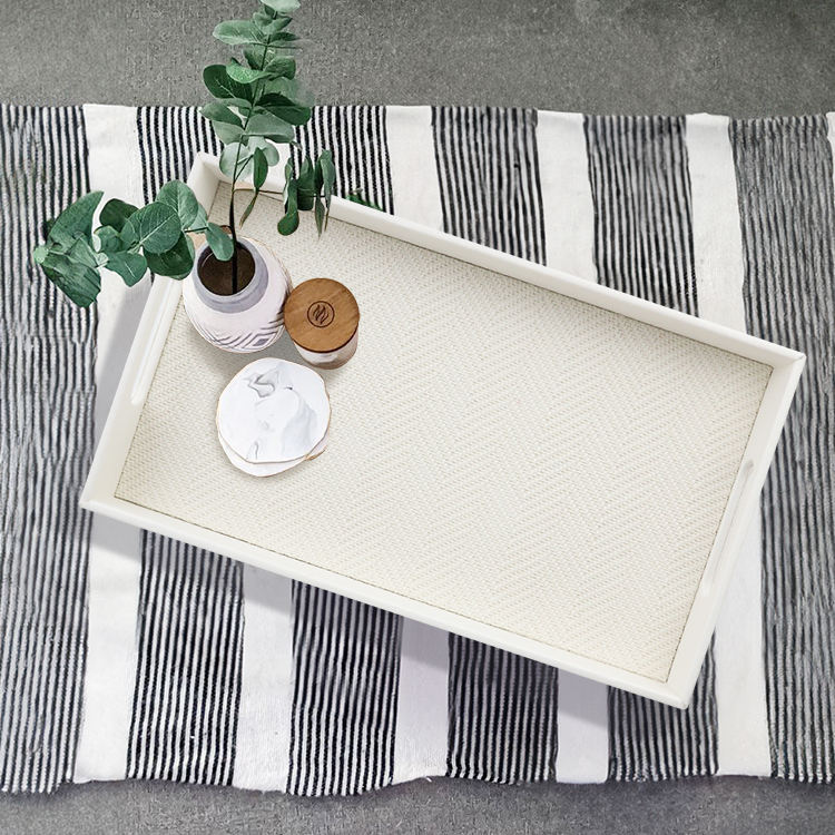 Plateau de rangement rectangle blanc en similicuir avec poignée