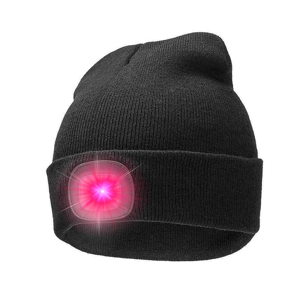 Bonnet tricoté thermique avec lumière Led, blanc et rouge, pour travail de Construction, randonnée et chasse