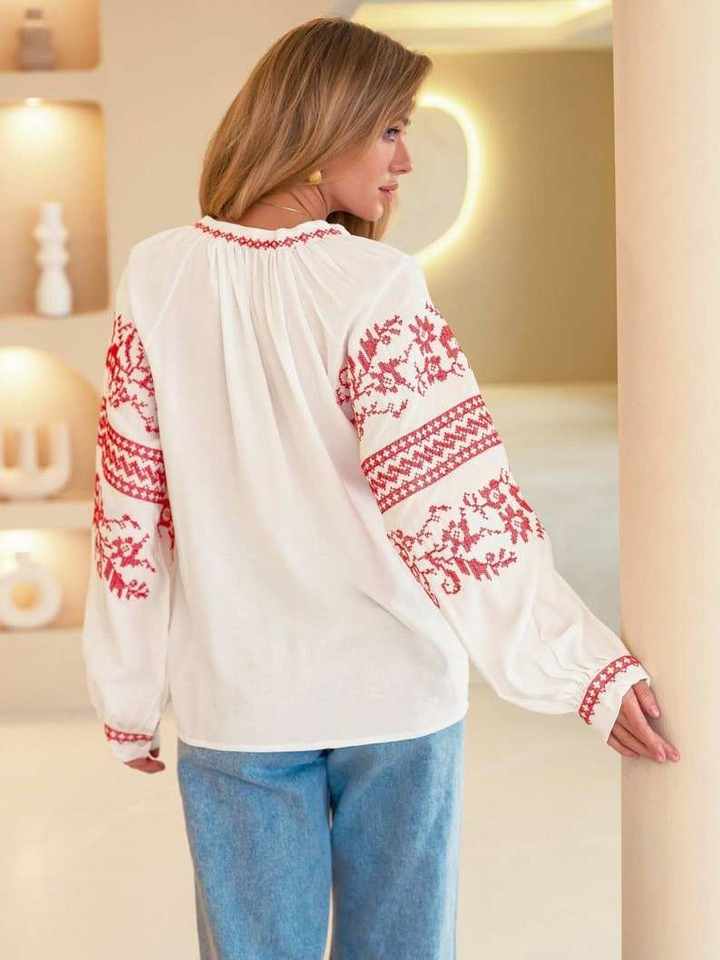 White Red Ukraine Embroidered Blouse Handmade Vishivanka Folk Dress Traditional Clothing Gift for Women Made in India