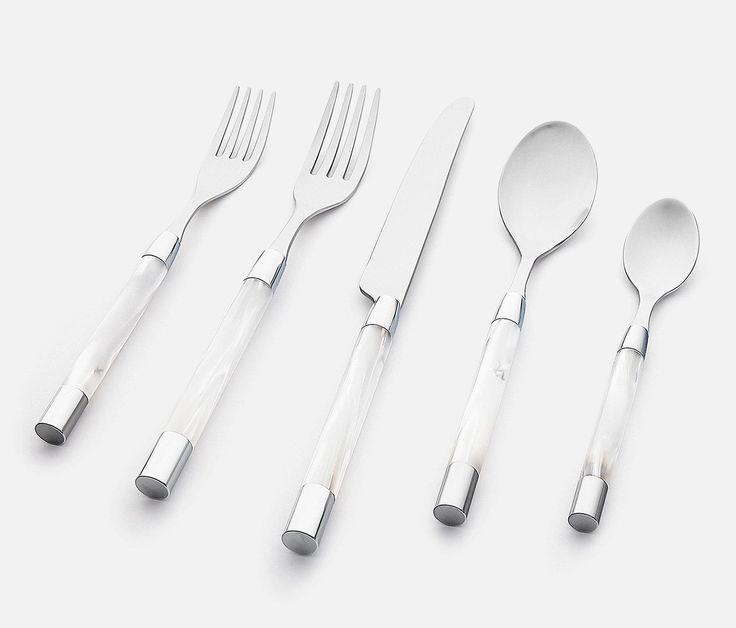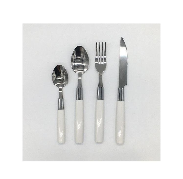 Ensemble de couverts à manche en résine blanche au design élégant et moderne, parfait pour les repas de tous les jours en famille et les occasions spéciales