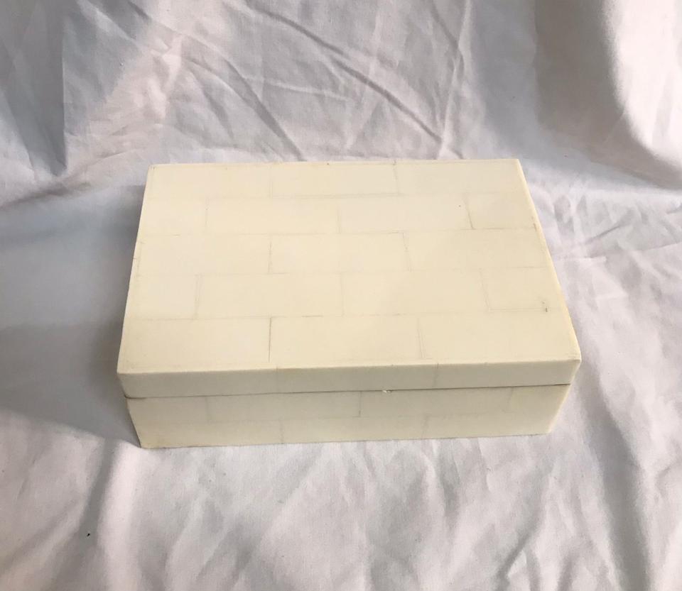Boîte à bijoux en résine blanche avec motif incrusté de briques fait à la main pour un rangement élégant et un emballage cadeau décoratif