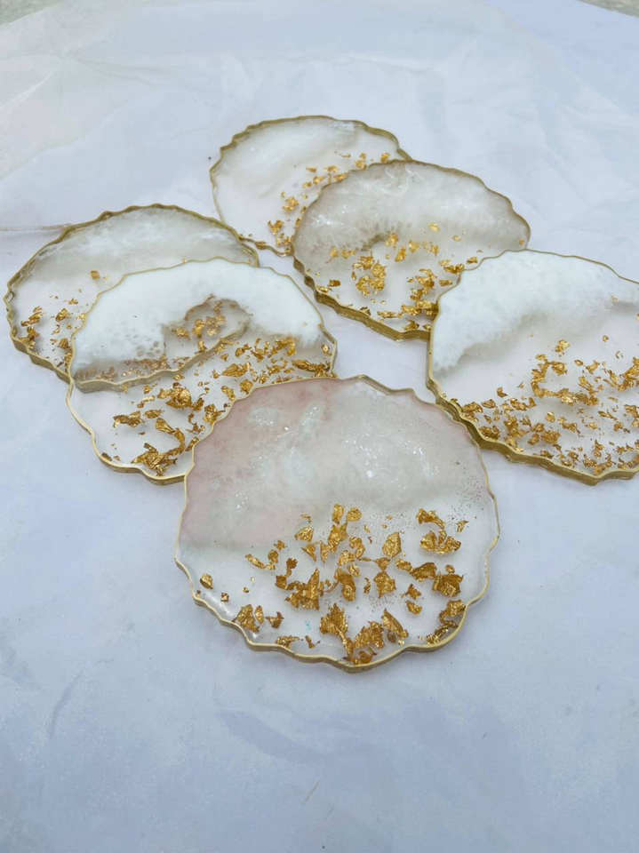 Tapis de Table en résine blanche, ensembles de Table de salle à manger pour un Design classique, logo personnalisé, dessous de verre rond en résine