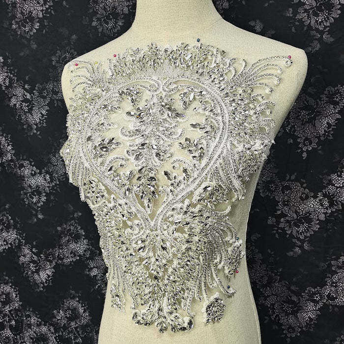 Strass blanc fabriqué à la main grand coeur Applique pour mariage bricolage mariée cristal Couture robe avec corsage Applique
