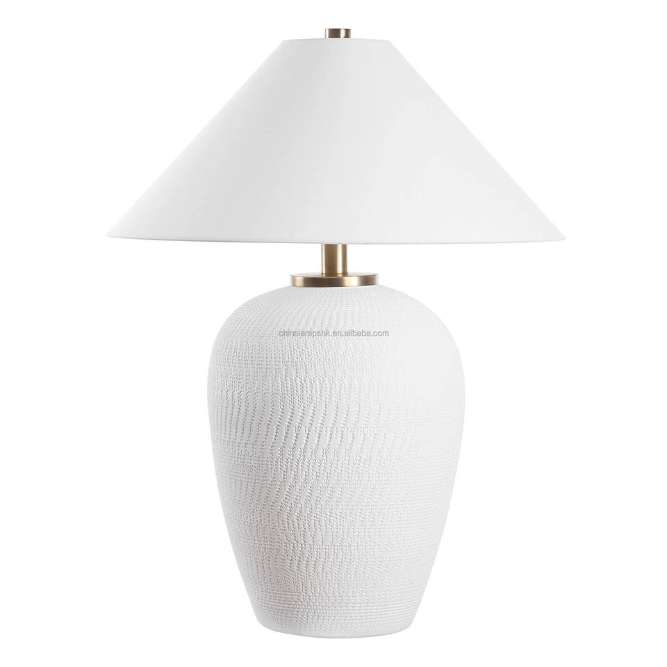 Lampe de table moderne minimaliste en céramique blanche côtelée avec base en laiton | Éclairage Sculptural Élégant pour Hall d'Hôtel & Premium L