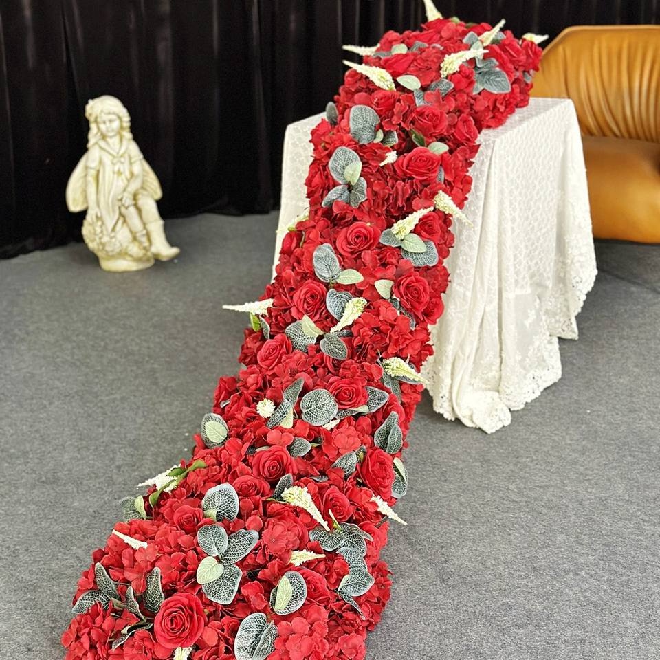 Bandes de fleurs artificielles de roses blanches et d'hortensias, rangées de fleurs, boules de fleurs, fleurs de table pour mariages et hôtels, fleurs de chemin de table, vente en gros