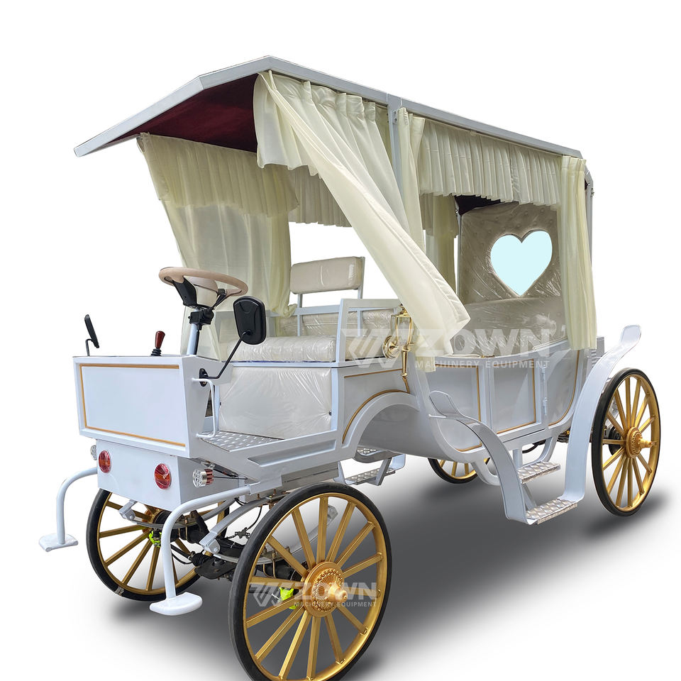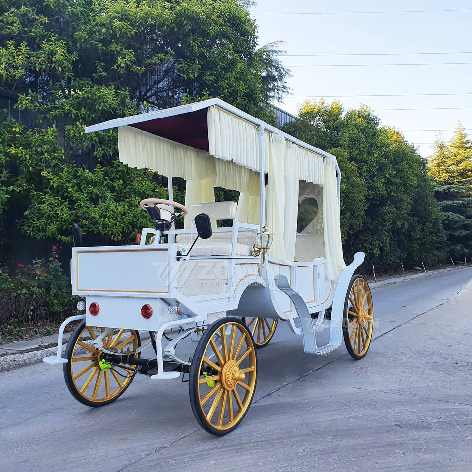 Electric White Royal Horse Buggy Comfortable Wedding Horse Cart European Style 4-Wheel Carriage for Sightseeing 4-6 People
