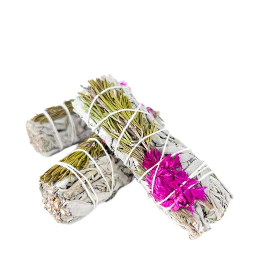 White Sage Rosemary Smudge Stick White Sage Rosemary and Plume Celosia 4 inch White Sage Rosemary & Plume Celosia 4