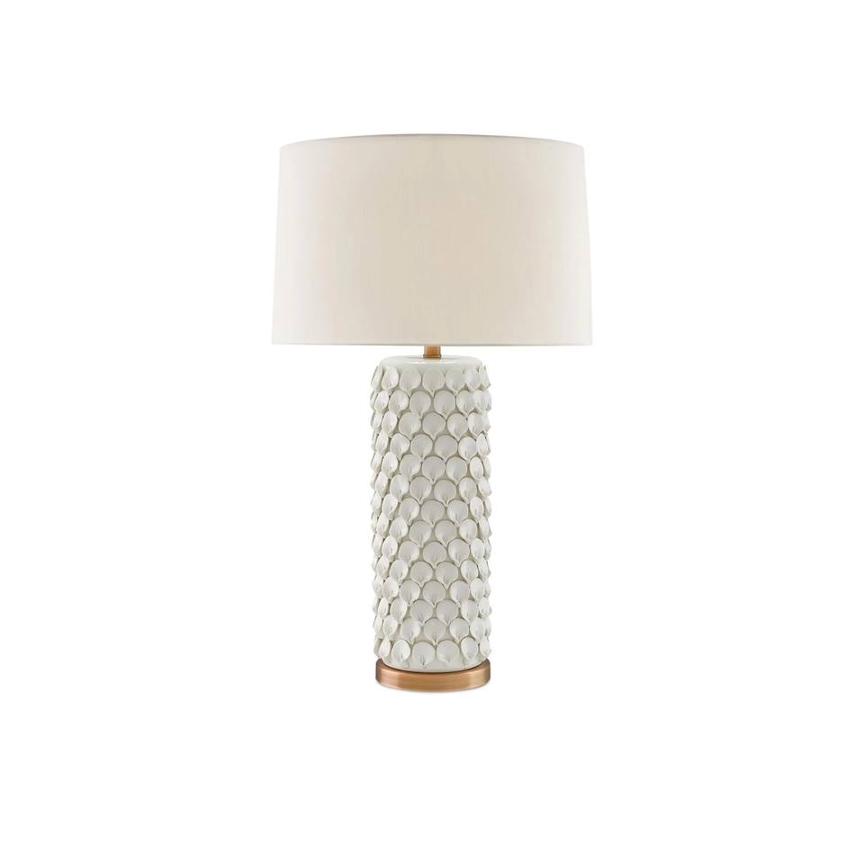 Lampe de table moderne en céramique texturée blanche et or, style art déco | Éclairage sculptural et élégant pour les espaces ouverts et les vestiaires d'hôtel